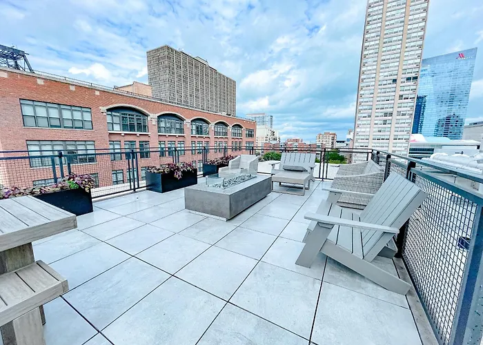 The 2-room Mccormick Place Magnificent 2Br-2Ba With Optional Parking, Patio, Gym Access That Sleeps 6 Chicago, situated in the South Loop district, is 3.4 miles from 360 Chicago Observation Deck. The apartment has a terrace with views of the street.